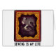 Das richtige Foto einer Viktorianischen Frau, die hart an ihrer "Staat-of-the-art" Nähmaschine arbeitet, zusammen mit einem lustigen Logo: Nähen ist mein Leben!