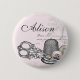 Nähende Begriffe auf rosa NamensAbzeichen Button