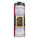Naher Anzug des Weihnachtsmannes Thermosbecher