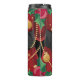 Diese festliche, nah-up Grafik zeigt den klassischen Santa Claus Anzug. In der Abbildung wird ein breiter schwarzer Gürtel mit einem großen goldenen Schnürchen, Set gegen den roten Mantel des Weihnachtsmanns und einem flauschigen weißen Bart hervorgehoben. Die Szene ist mit Zierpflanzen aus heiligen, roten Bauern und goldenen Perlen geschmückt, die den detaillierten Charme der Feriensaison einfangen.
