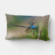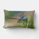 Naher Aufstieg eines blauen Drachen fliegt auf ein Lendenkissen