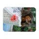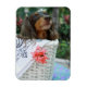 Naher Hund einer Dackel, der in einem Korb sitzt Magnet