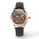 Uhr, Klassische Damenuhr mit schwarzen Lederarmband
