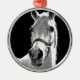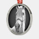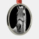 Nahes Schwarz-weißes Pferd in der Nacht Silbernes Ornament