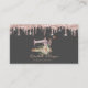 Berufliche Mode Stylist Visitenkarte mit einer schönen Nähmaschine mit Blume und einer eleganten Rose Gold Tropfen auf grauem Hintergrund. Fügen Sie Ihren Namen und Ihre Kontaktdaten hinzu, um einen bleibenden ersten Eindruck zu machen.
