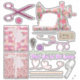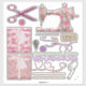 Eine Collage von genähten Stickereien. Seing Maching, Stoff, Schere, Faden, Knöpfe und mehr. Perfekt für das Kunsthandwerk, Scrapbooking und Geschenke.niedlich und gemütlich