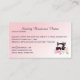 Eine stilvolle Visitenkarte der Nähmaschine ist mit einer Schneiderpuppe und einer Nähmaschine mit rosa Saitenleuchten dekoriert, die alle auf einem hellrosa Farbverlaufshintergrund stehen. Ideal für alle kleinen Nähfirmen, Stoffgeschäfte oder Quiltgeschäfte. Fügen Sie Ihrem Unternehmen Details zum Treueprogramm hinzu, um eine stilvolle und moderne Treuekarte zu erhalten.