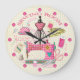 Nähen Sie mit dieser stilvollen Nähsaal-Wanduhr. Dieser lustige Nähraum-Uhr hat ein Nähthema mit verschiedenen Nähmaschinen, wie Nähmaschine, Nadel und Faden, Klebeband, Baumwollfäden und anderen Couturen, und anstelle von Zahlen hat er niedliche rosa Tasten um das Gesicht! Diese Uhr im Nähzimmer sieht wunderbar aus und behalte perfekte Zeit! Es ist auch ein tolles Geschenk! Dieses Design des Nähraumes wird auch bei anderen großartigen Produkten im Stand Up and Cheer Store vorgestellt.