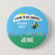 Ich muss Allergie-Alarmknopf "der Biene" vorsichtiger Nahrungsmittel. Hummelbienenentwurf auf blauem Himmel mit grünem Gras und Blumen. Fertigen Sie mit Namen oder anderem Text zu Anmerkungs"Adrenalin-Innere" Befestigung zu den medizinischen Taschen, zu den sicheren Imbisstaschen oder zu den Buchtaschen besonders an. Entwürfe durch Lil Allergie befürwortet ww.lilallergyadvocates.com