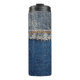 Naht mit orangefarbenem Faden auf gebleicht Thermosbecher
