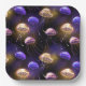 Nahtlose Muster heller, goldener, lila, künstlerisch gezeichnet, leuchtender Quallen auf schwarzem Meeresgrund. Glühende Quallen.
