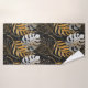 Nahtlos mit goldener, silberner tropischer Pflanze Badehandtuch