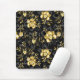 Nahtloses Muster mit schwarz-goldblühenden Orchideen, reich verziert mit schwarzen Eukalyptuszweigen und zarten Pistazienzweigen im Schmuck auf schwarzem Hintergrund. Goldener Schmuck Orchid.