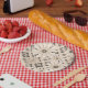 Nahtlose abstrakte, moderne, karierte karierte Blü Pappteller