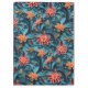 Eine schöne Zwischenablage mit einem nahtlosen, blumengeschmückten Papier vor blauem Hintergrund.