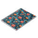 Ein wunderschönes Foto Notebook mit einem nahtlosen, blumengeschmückten Papiermuster vor blauem Hintergrund.
