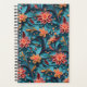 Ein schöner Planer mit einem nahtlosen Blatt Blumenmuster vor blauem Hintergrund.