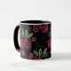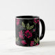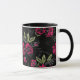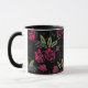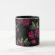 Nahtlose, blumenrosa Blume, grüne Blätter skizzier Tasse
