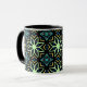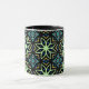 Ein niedliches und kompliziertes symmetrisches Blumenmuster mit kalten Farbtönen.