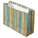 Ein schönes, modernes, nahtloses Muster aus dünnen und dicken Streifen. Es ist grün, orange, blau, braun, braun und creme gefärbt!