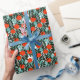 Nahtlos orangefarbene Fruchtprint, natürlicher Garten-Hintergrund, Tapete-Druck Playful orange Frucht Druck auf einem denim blauen Hintergrund. Orangefarbenes Fruchtprint auf Denim Blau. Natürliche und erfrischende Früchte, Muster, hell, tropisch, Hintergrund, abstrakt, Textur, Dekoration, Essen, Sommer, Illustration, Feder, Blatt, Garten, nahtlos, blau, orange, Doodle, Stoff, zeichnend
