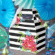 Nahtlose rosa Blume mit Schwarz-weißem Streifen Geschenkschachtel