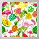 Nahtlose tropische Muster mit rosafarbenem Flamingo, Blätter aus Palmen, Wassermelonen und Ananas. Sommer tropische Illustration. Trendy Design Hintergründe: Flamingo,Muster,Ananas,tropische,Wassermelone,nahtlos,floral,Sommer,Hintergrund,Mode,Illustration,Blatt,Ananas,Art,Vogel,Palm,Doodle,exotisch,flach,Vintag,Retro,Illustration,