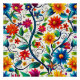Ein digitales Rendering eines nahtlosen, sich wiederholenden farbenfrohen Blumenmusters.