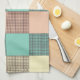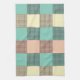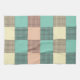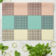 Ein nahtloses Karomuster mit abwechselnden Pastellquadraten in Türkis, Creme und Beige. Jedes Quadrat ist mit einem kreuz und quer verlaufenden Gitterdesign gefüllt, wodurch ein vintage und ordentlicher Look entsteht.