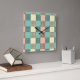 Ein nahtloses Karomuster mit abwechselnden Pastellquadraten in Türkis, Creme und Beige. Jedes Quadrat ist mit einem kreuz und quer verlaufenden Gitterdesign gefüllt, wodurch ein vintage und ordentlicher Look entsteht.