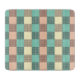 Ein nahtloses Karomuster mit abwechselnden Pastellquadraten in Türkis, Creme und Beige. Jedes Quadrat ist mit einem Gitterdesign gefüllt, das ein vintage und ordentliches Gefühl erzeugt.