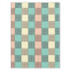 Ein nahtloses Karomuster mit abwechselnden Pastellquadraten in Türkis, Creme und Beige. Jedes Quadrat ist mit einem Gitterdesign gefüllt, das ein vintage und ordentliches Gefühl erzeugt.