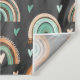 Nahtloses Muster handgezogener Herzen und bohischer Regenbogen in Pastellminze und neutrale Beige Farben auf dunklem Hintergrund