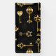 Nahtloses Muster von alten, goldenen und Silhouette Tasten auf schwarzem Hintergrund.