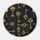 Nahtloses Muster von alten, goldenen und Silhouette Tasten auf schwarzem Hintergrund.