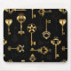 Nahtloses Muster von alten, goldenen und Silhouette Tasten auf schwarzem Hintergrund.