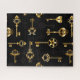 Nahtloses Muster von alten, goldenen und Silhouette Tasten auf schwarzem Hintergrund.