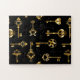 Nahtloses Muster von alten, goldenen und Silhouette Tasten auf schwarzem Hintergrund.