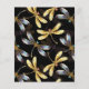 Nahtloses Muster mit Gold, Schmuck, glänzende Libellen mit detaillierten, funkelnden Flügeln auf schwarzem Hintergrund. Goldene Libelle.