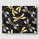 Nahtloses Muster mit Gold, Schmuck, glänzende Libellen mit detaillierten, funkelnden Flügeln auf schwarzem Hintergrund. Goldene Libelle.