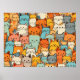 Nahtloses Muster Niedlich Kawaii Cats Poster