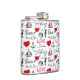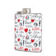 Seamloses Wassermuster mit Wasserzeichen (Segelboot, Anker, Wellen, Seepferd, Muschel) und roten Herzen mit Textdesign auf weißem Hintergrund