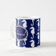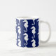 Unendliches und nahtloses Muster von Silhouetten aus weißen Seepferden über einem marinebasierten Hintergrund. Klassisch für die nautische oder Küstendekoration. Passen Sie auf Ihre Wünsche ein.
