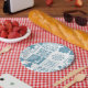 Nahtloses Weihnachts-Patchwork-Schneeflocken-Butto Pappteller