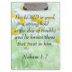 "The LORD is good, a strong hold in the day of trouble; and he knows those that trust in him." Nahum 1:7. Make this beautiful declaration of faith with this scripture text on a grassy green background with white & yellow daises.