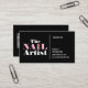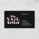 Ein bearbeitbares Nail-Künstler Visitenkartendesign, mit QR-Code, Social Media Handles und Vintager Typografie in Rosa und Weiß auf schwarzem Hintergrund. Scannable QR Code leitet Kunden sofort auf Ihre Buchungsseite. Blumenmuster innerhalb des Typs.