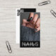 Dieses einfache Design hat Platz für ein Foto Ihrer Nagelkunst auf der Vorderseite mit Ihrem Namen. Sie können Ihre Kontaktdaten und einen QR-Code auf der Rückseite hinzufügen.