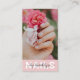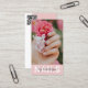 Dieses einfache Design hat Platz für ein Foto Ihrer Nagelkunst auf der Vorderseite mit Ihrem Namen. Sie können Ihre Kontaktdaten und einen QR-Code auf der Rückseite hinzufügen.