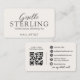 Professional business card designed for nail artists using a soft, neutral color palette. The layout includes a QR code to share online information while keeping the design clean and easy to read. Suitable for nail artists, nail technicians, and salon professionals. Fully customizable text and QR destination with a print-ready layout.