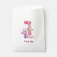 Fun favor bag features stacked bottles of nail polish in a variety of colors with customizable pink text. Perfect for salon giveaways and spa parties.